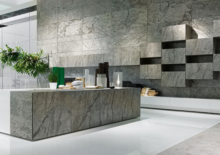 Imported granites enhance outdoor landscapes through the creation of durable and visually appealing pathways, patios, and other hardscape features.